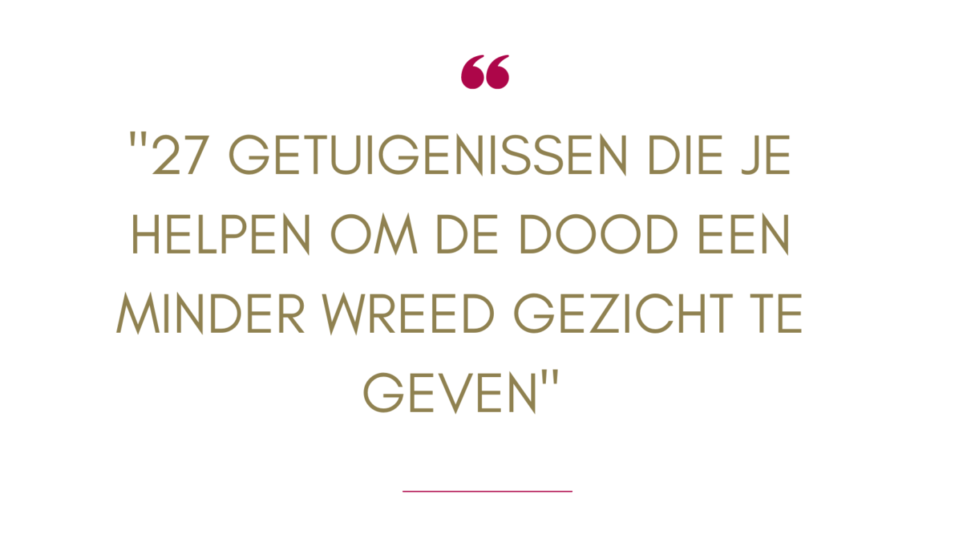 27 keer krijg je een levensverhaal te horen met de bedoeling jou moed geven en helpen om de dood een minder wreed gezicht te geven.