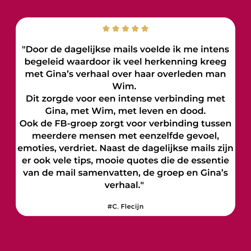 Net zoals het traject DoodGelukkig 40 dagen inspiratie levert ben je door een abonnement op ‘doodgelukkige getuigeinissen’ 27 weken geïnspireerd door diepzinnige interviews. Je hoort van nabestaanden hoe zij kijken naar de dood, gelukkig verder leven na de dood van een geliefde