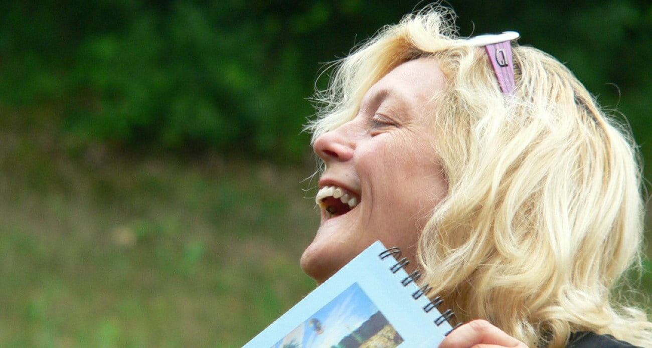 Het eerste hoofdstuk van mijn boek begint met het zinnetje ‘Wanneer heb ik voor het laatst gelachen?” Dit hoofdstuk komt ook steeds aan bod in mijn huiskamerlezingen en boekvertellingen. Ongelooflijk hoeveel mensen er zich in herkennen. Ze dragen een loodzware rugzak met zich mee die ze tijdens hun levensreis vulden met alsmaar meer materialistische hebbedingen, met alsmaar meer verantwoordelijken,met zovele ‘moetens’ en zorgen en nog zoveel meer van dit alles. Alle energie en aandacht gaat dan naar het dragen en meezeulen van die rugzak. Ik zag nog nooit iemand lachen of moppen tappen tijdens dit zwaar sleurwerk, ik zeker ook niet. Tijdens één van de yogalessen werd ik er me bewust van dat mijn gezicht in een ongelooflijke “serieux”-pose zat. Wat verademing als ik er zomaar een glimlach op toverde, wat een aangenaam en ontspannen gevoel gaf dat aan mijn gelaat!
