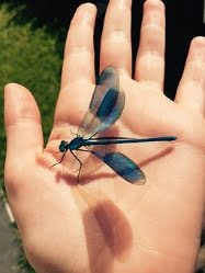 Waar ik mijn dochter wel mee inspireerde, zij het met ongeloof, is met mijn attitude toen er een grote libelle op de rand van mijn strandstoel kwam liggen. Ze panikeerde zo fel en was bang voor een prikkende steek. Ik kalmeerde haar met een paar inspiraties zoals: “een libelle steekt niet, die is daar zelf veel te licht voor”.